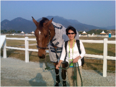 | Boi with Chai Thai, her niece’s (Nina) horse, at the Asian Games in Guangzhou, China. No Boi wasn’t competing, she was there cheering on Team Thailand onto a Silver Medal in eventing!! | ![]() |