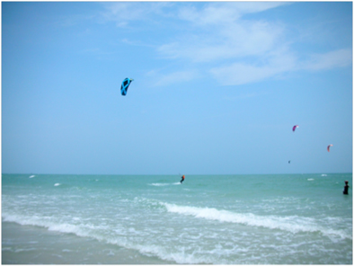 And he’s up… Sebi, kite-surfing off into the horizon- literally- in Hua Hin, Thailand. This was before he had to be rescued and Boi had aged 10 years with worry. |