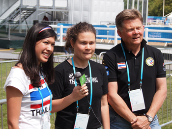 | Lara, with Nisha and Austin, was proud to be Thai as she worked as the PA to the Chef d'Equippe of the Thai Equestrian Federation (Pan!!)when Nina, her cousin, competed at the Test Event in preparation for London 2012. | ![]() |